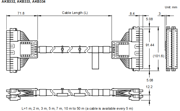 AKB336信号电缆(用于ALF111之间的连接):AKB336-M001(1M),AKB336-M002(2M),AKB336-M003(3M),AKB336-M005(5M),AKB336-M007(7M),AKB336-M010(10M)长可达30米。