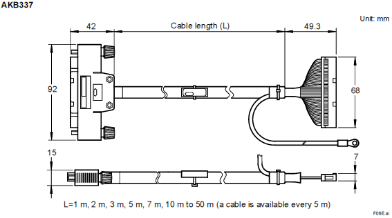 AKB336信号电缆(用于ALF111之间的连接):AKB336-M001(1M),AKB336-M002(2M),AKB336-M003(3M),AKB336-M005(5M),AKB336-M007(7M),AKB336-M010(10M)长可达30米。